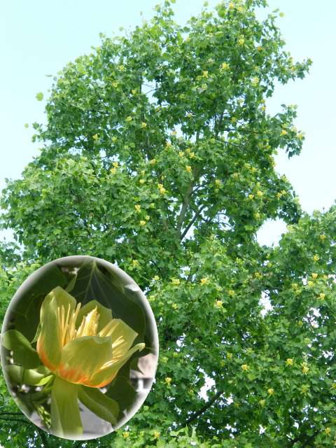 Endlich habe ich nun mal einen Tulpenbaum beim Blühen erwischt! Die schönen Blumen fallen gar nicht so auf und erst beim zweiten Blick stellt man fest, dass man vor einem riesigen Baum voller Blüten steht. Für alle, die wie ich, sich rote Tulpen an einem Baum vorgestellt haben, hier ein Muster, nach was man Ausschau halten muss. Sie sind nun eben am Blühen und eigentlich sollte man die Möglichkeit haben, den Baum von oben her zu bestaunen. Der Tulpenbaum (Liriodendron tulipifera) ist eine in Nordamerika heimische Baumart aus der Familie der Magnoliengewächse (In Wikipedia nachgeschaut!)