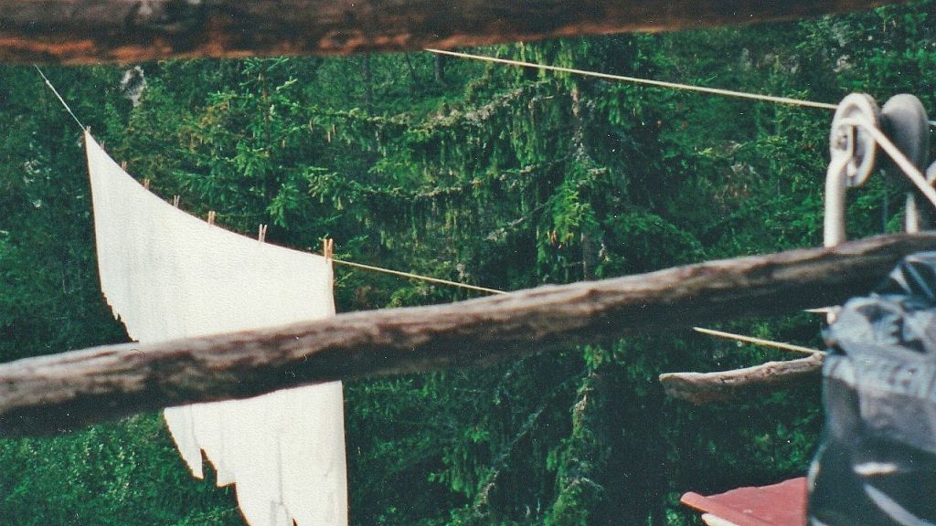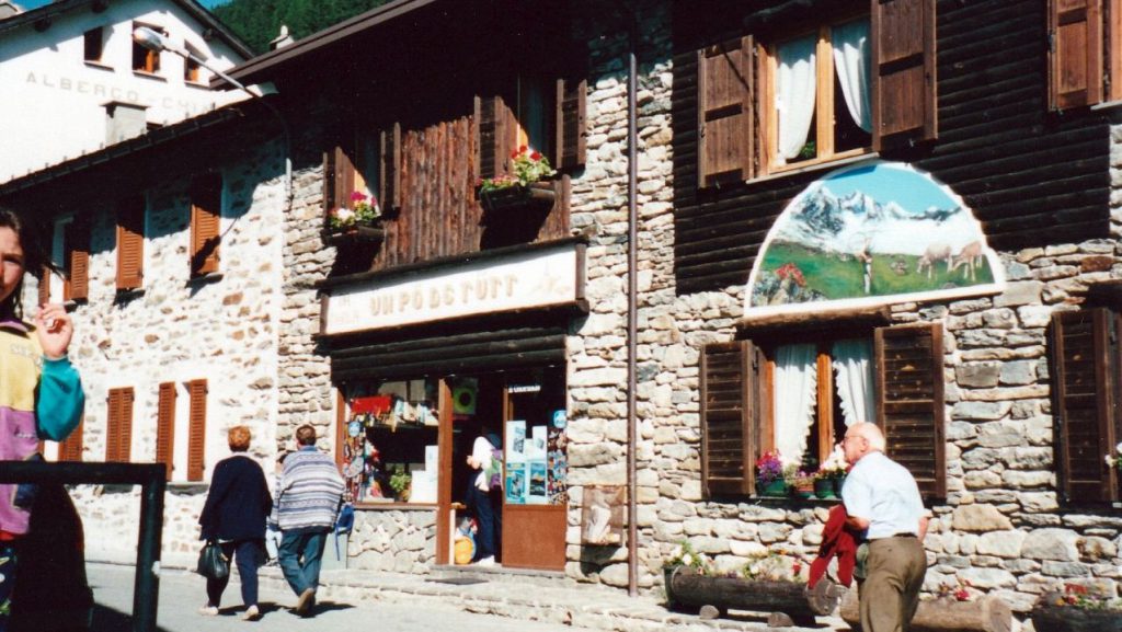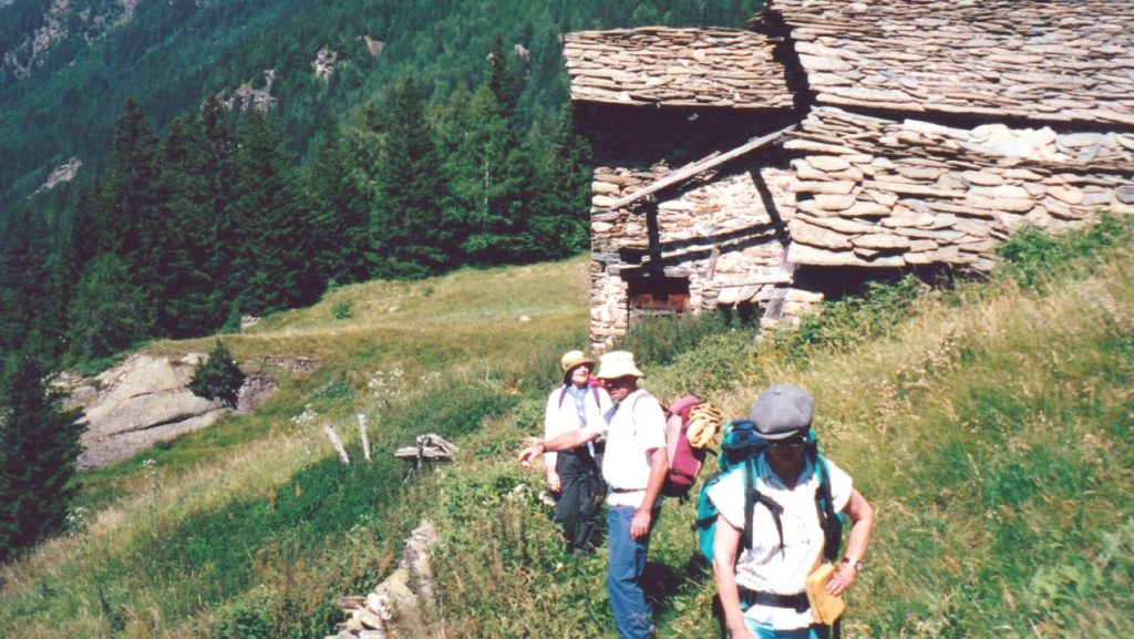 Durch lichten Lärchenwald kommen wir bald der Zivilisation wieder näher. Wanderer, Bauern beim Heuen, und schon winken die Sonnenschirme eines Restaurants von Chiareggio. Durst hat’s gegeben und glücklich, mit mehr oder weniger heilen Knien unten angekommen zu sein, spendiert Hans eine Eisteerunde. Freudig überrascht vernehmen wir, dass es bis zum Chalet Tanna del Grillo nur noch zweihundert Meter seien. Dort hat man für uns die Mansarde reserviert. Schöne Zimmer überlässt man lieber den Dauergästen. Ein Zweier- und ein Viererzimmer unter der Dachschräge, noch halb im Rohbau und für die restlichen Sechs sind einfach im hinteren Winkel des Estrichs, wo Reserve-Klappbetten und Wolldecken und anderer Kram stapeln, noch irgendwie drei Kajüttenbetten hineingepfercht worden. Die zweite Hälfte des Estrichs ist für das Personal reserviert, diskret mit einem Vorhang abgetrennt. Duschen kann man im ersten Stock, zwar zum Ärger einer Pensionärin im ‚Privat‘-Teil. Aber Warmwasser ist für alle genug da. Die Dusche in der Mansarde ist noch im Entstehen begriffen. Wasseranschlüsse sind vorhanden und auch ein WC ist betriebsbereit. Nur noch nicht angeschraubt, was einem beim unvorsichtigen Hinsetzen eine Schrecksekunde beschert. Und für das wollen sie 70’000 Lire! Das können die nicht machen, das werden wir nicht akzeptieren!