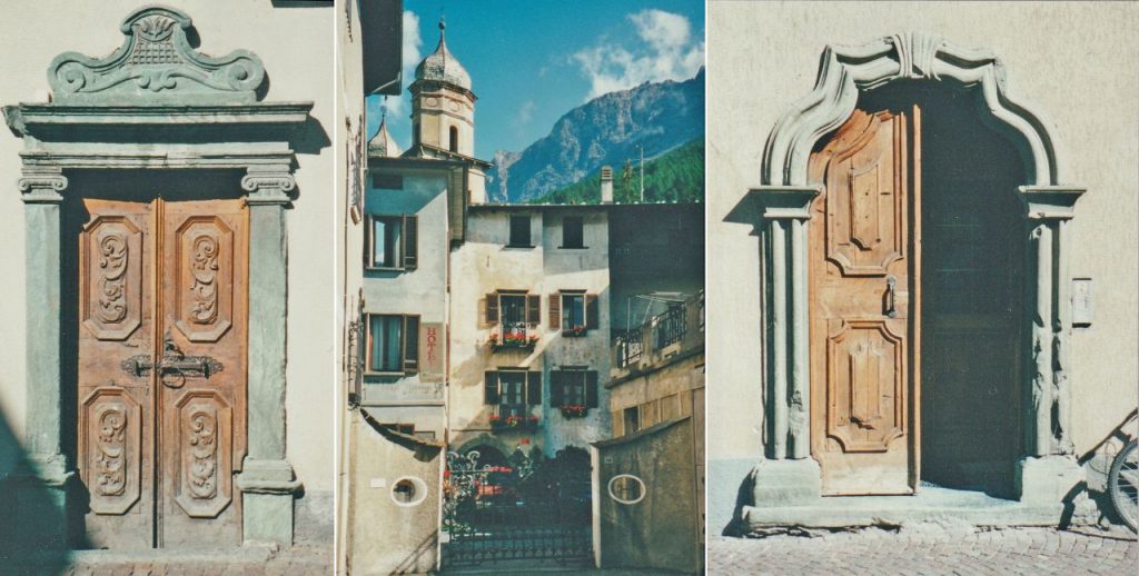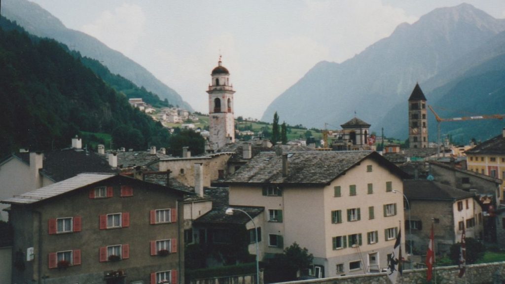 Es ist noch nicht so lange her, seit Hans und Margrit ‚aussenherum‘ übers Veltlin und Tirano im Hotel Alta Villa eingetroffen sind. Nach einer erfrischenden Dusche reicht die Zeit noch spielend, für eine Ortserkundung, einen staunenden Blick in die Kirche San Vittore Mauro und einen gruseligen in das Beinhaus nebenan, für Einkäufe im Konsum oder Kiosk und Apéro auf der Piazza. Das ganze Städtchen ist wieder renoviert, und kaum jemand sieht ihm noch an, wie hier vor wenigen Jahren der harmlos aussehende Bach gewütet hat.