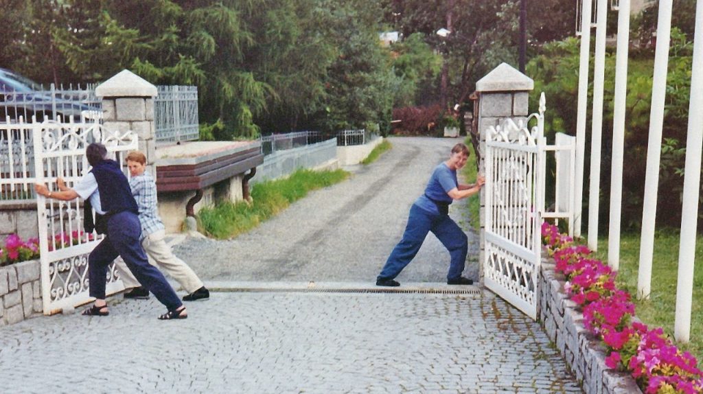 Unterwegs hat Rosmarie etwas von einem ihrer Hobbies erzählt. Sie gibt Senioren und Seniorinnen Kurse in Walking. Natürlich muss sie uns darüber das Wichtigste in Kürze erläutern. Nicht nur die richtige Haltung und Atmung ist dabei wichtig, sondern auch wirkungsvolle Dehnungsübungen. Wir probieren das beim Einfahrtstor des Hotels gleich aus. Für Hans scheint das etwas kurios zu sein, und zuhause wird er dann mit einer Foto allen beweisen, dass wir versucht hätten, das Hotelportal zu versetzen.