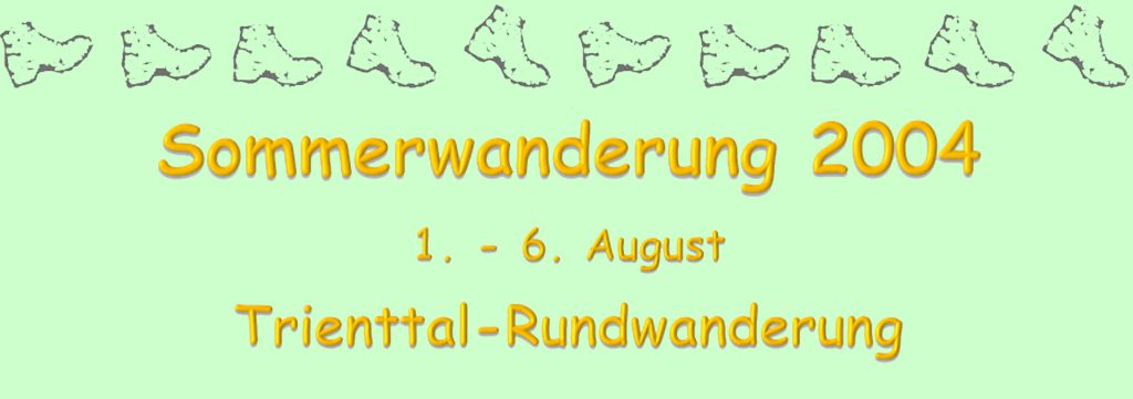 So bleibt also unsere Heimkehr programmgemäss, wie vorausgeplant. René wird uns abholen. Für mich ist jetzt das Heimkommen anders als all die vielen Male, seit ich im Jahr 1995 das erste Mal mit Hans auf eine Sommerwanderung gegangen bin. Ich werde daheim erwartet und ich kann jemandem unsere Abenteuer erzählen. Eigentlich muss ich jetzt zur Kompensation oder Verarbeitung keinen Bericht mehr schreiben. Das habe ich heute Morgen zu Hans gesagt. Jedoch die Enttäuschung, die ich in seinen Augen gelesen habe, konnte ich nicht aushalten, darum habe ich mich daheim wieder hingesetzt und die Tour nochmals Revue passieren lassen. Zugegeben, es macht mir ja selber auch Spass. Knud hat mir seine Fotos auch noch beigesteuert und ich hoffe, dass damit unsere Trienttour 2004 bei Allen in farbiger Erinnerung bleibt.