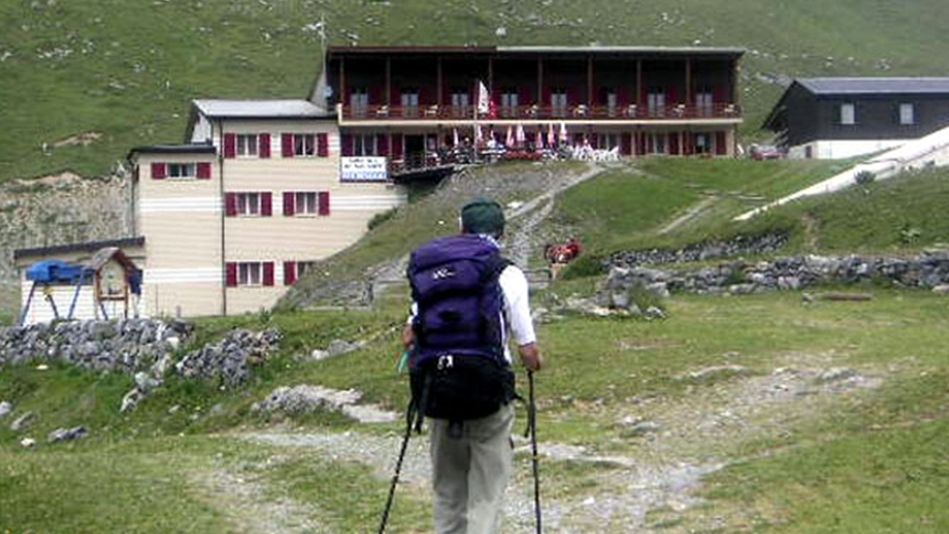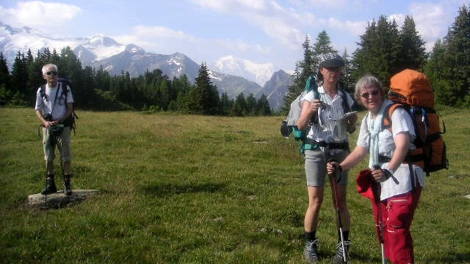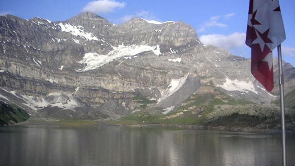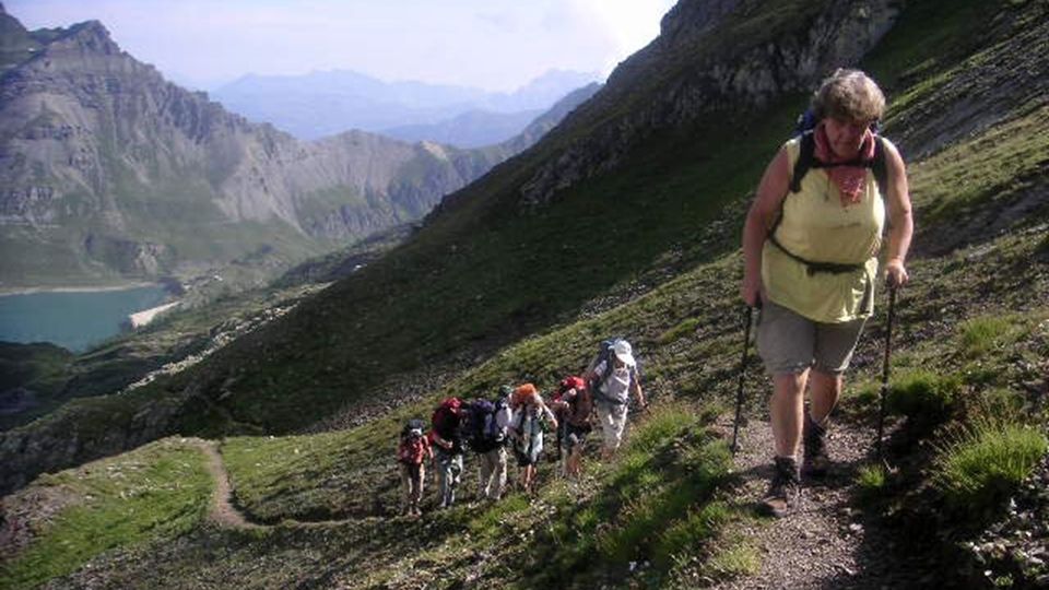 An meinen Rucksack habe ich mich nun schon während den letzten Tagen gewöhnt – mit Vreni zusammen von Zweisimmen aus, mit leichterem Gepäck auf Rinderberg, Rellerli und Lauenensee und gestern mit Vollpackung von Gsteig die Nordwand hinauf auf den Sanetschpass. Einem Muskelkater habe ich gar keine Chance gegeben und so fühle ich mich ziemlich gewappnet und bereit für die diesjährige Sommerwanderung mit Hans auf die Trienttal-Rundwanderung. Seen, Pässe und Gletscher werden uns versprochen, ja sogar 200 Millionen Jahre alte Dinosaurierspuren! Voll solcher Erwartungen sitze ich nun in Martigny bei einem Kaffee und warte auf die Einfahrt des Zuges, mit welchem Hans, Esti, Klaus, Marie-Louise, Lykke-Lise und Hansruedi aus Basel ankommen. Margrit und Knud müssen heute noch an einer Erst-August-Feier ein paar Volkstänze zum Besten geben. Sie werden dann morgen zusammen mit Liselotte in Les Marécottes zu uns stossen. Das Wetter ist uns hold und die Aussichten für die nächsten Tage absolut wanderfreundlich.
