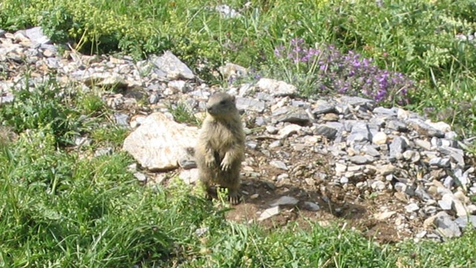 Bei der zweiten Abzweigung verlockt der Wegweiser zu einer halbstündigen Abkürzung. Anstatt durch ein unattraktives Tobel hinauf zum alten Emosson Stausee, führt uns der Bergweg durch ein romantisches Tälchen, wo uns Wässerchen begleiten, Murmeltiere beäugen und die diversesten Blumen erfreuen, sodass wir uns zu unserem Entschluss gratulieren.