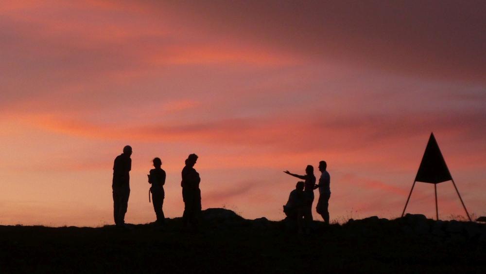 Draussen wird der Himmel langsam stimmungsvoll und so vertagen wir das Zahlen auf nachher und stürmen nochmals hinauf zum höchsten Punkt, von wo wir uns mit einem weiten Rundumblick über Berge und Tal von diesem schönen, aber heissen Tag verabschieden.